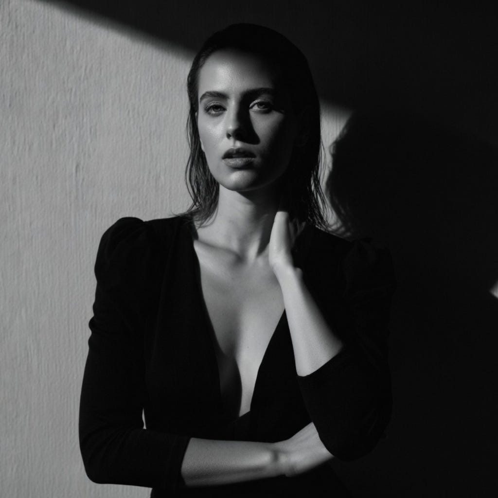 The steam rises like a veil, turning the en-suite into a sanctuary of salt and rose. I let the silk slide from my shoulders, a brief glance at my reflection, the sharp response of skin to the humid air, a body standing to attention before the water. You arrive, and the air shifts, my nipples rise harder, my belly turns over. I feel my moistening flow as I slowly start to ground and let go. "Seduce me room by room," I breathe. You curl into my space, not with force, but with the quiet wisdom of a cat, one eye open, tracing the architecture of my thoughts rather than the lines of my skin. You are a master of the emotional unpicking. My thighs quiver, my mind runs a river over you and around you with my eyes. You're reading the silence. And catch the thought before it forms, passing the wine glass to my lips as if to prove you’ve already been inside my head. I sip, held by a gaze that never wavers. It’s the pause that seduces, the hollow air between us filling with a weight that words can't carry. My longing to feel you fill me rises, second by second. I lean back against the cool porcelain of the sink, licking wine from my lips, a quick fix before the slow burn. No games here. We are adults, grounded and certain. You take the glass, the resin clinking as you set it aside, and press my hands to my own hips, reminding me exactly where I begin and end. The taps are still running, forgotten. I am slick with steam and intent, my heart a frantic rhythm against the stillness of your clothes. I cross my ankles, a playful gatekeeper, holding onto the power of the tease. But you lean in, manoeuvring me deeper, into the heat, reclaiming the momentum with a kiss that tastes like surrender. Your hands slide a map from hip to waist, finding the perfect anchor. You lift me, weight shifts me, to the basin’s edge, and the world narrows to the space between us. You sink to your knees, and I finally open not just to your touch, but to the gravity of the moment. Wide-legged and longing, I push your head between my thighs and hear you release at my taste. The water overfills, a silver spill. Your sounds a rhythmic pulse against the quiet floor. While time dissolves beneath your steady will, I'm seen, not a secret anymore. You close my ache amidst the soft and sudden heat, where salt and petal meet the rising tide. The ritual is holy and complete, with nowhere left for wanting to reside.